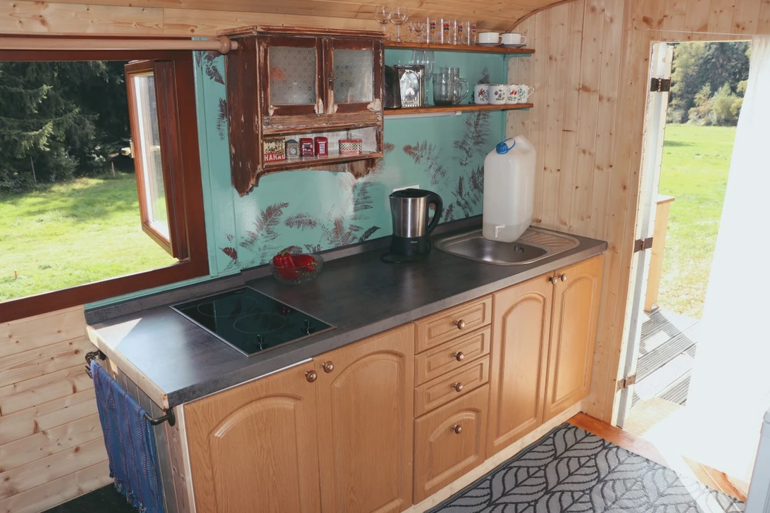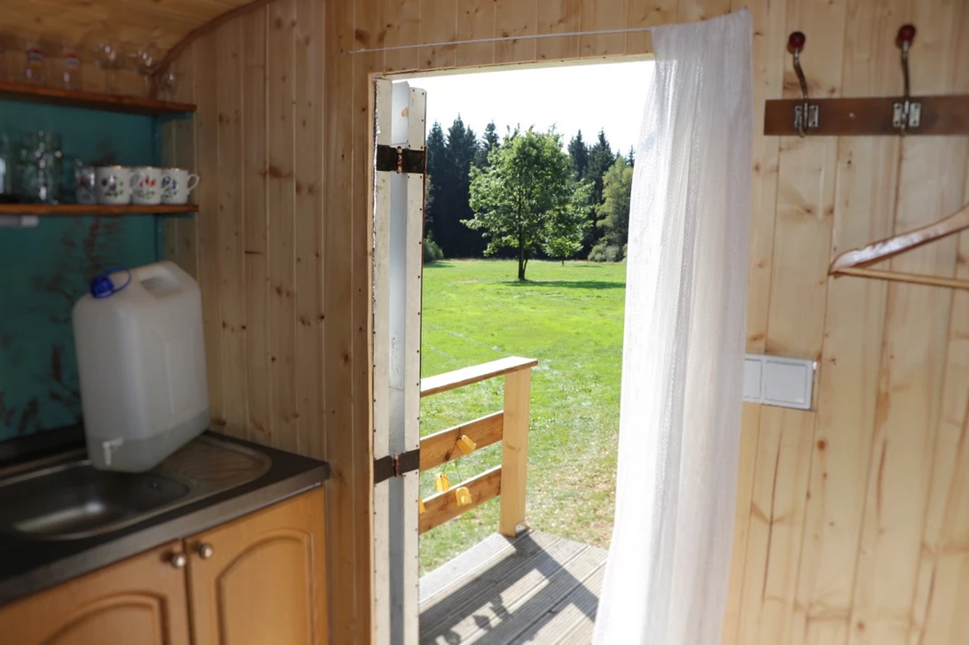 Come and take a break from civilization in our cozy maringotka in Czech Canada, which stands on a clearing in the forest in the very heart of Czech Canada. You are guaranteed not to meet any living creatures here, your neighbors will only be birds and forest animals. It's quiet and peaceful here.